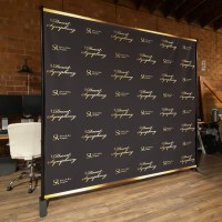 This Step and Repeat Media wall is ideal for photo shoots, red carpet events, trade show displays, events, self promo. It is lightweight and easy to put together. It is a complete package with the hardware, fabric or vinyl print that is fully color dye sublimated and includes the canvas carry bag. 120" W x 96" H is one of the most popular sold items! We do have 6x8, 5x8, and 8x8 size options available.