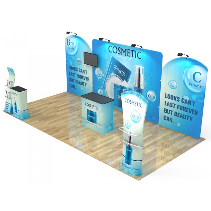 - Set includes backwalls, podiums, literature/shelving stands and more